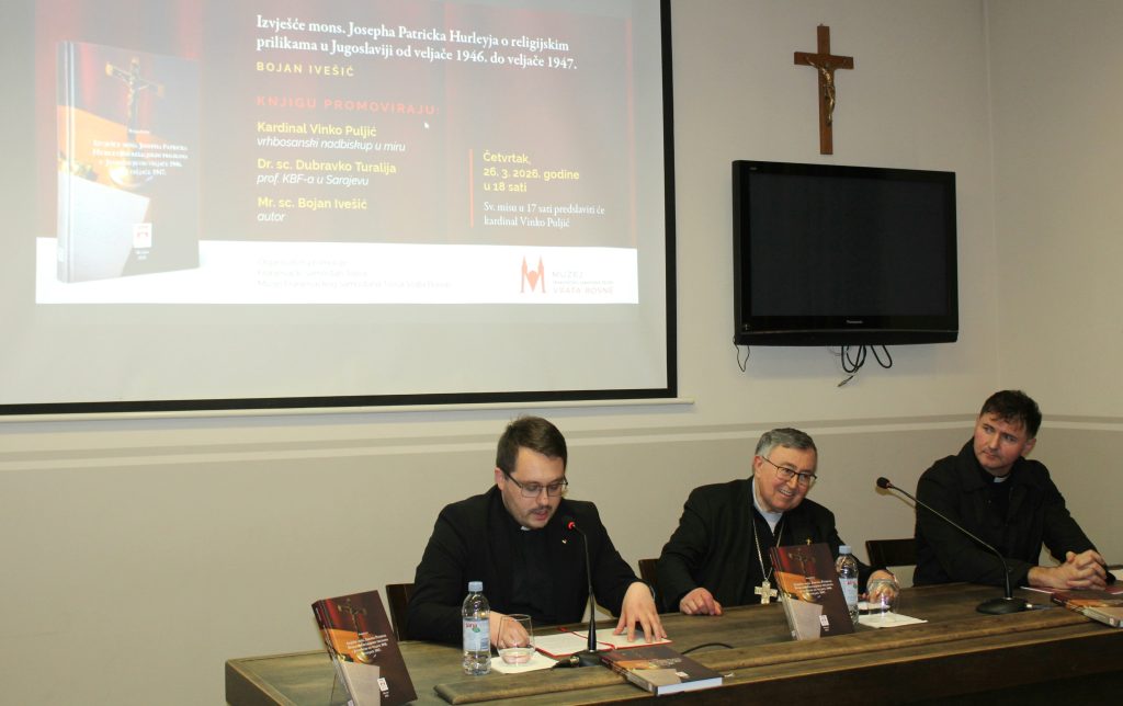 U organizaciji Franjevačkog samostana Tolisa i Muzeja „Vrata Bosne“ sinoć je u muzejskoj dvorani upriličena promocija knjige vlč. Bojana Ivešića koja govori o religijskim prilikama u Jugoslaviji od veljače 1946. do veljače 1947. godine. Knjiga je vrijedan i autentičan povijesni dokument koji svjedoči o položaju Katoličke crkve i vjernika u razdoblju obilježenom društvenim i političkim promjenama, progonom i ograničavanjem vjerskih sloboda, osobito katolika i Hrvata. Uz autora, o knjizi su govorili kardinal Vinko Puljić, vrhbosanski nadbiskup u miru i dr. Dubravko Turalija, profesor na KBF u Sarajevu.